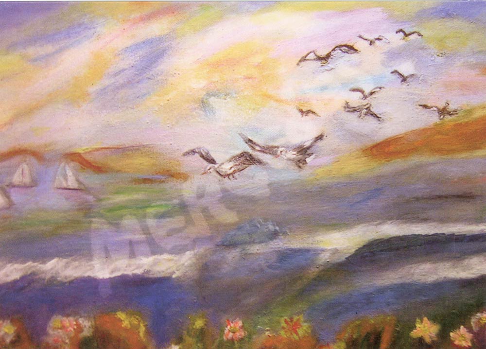 When she was a young girl growing up in Puerto Vallarta, Mercedes was inspired by the beauty of the green forests and blue ocean of her native town to yearn to one day capturre that beauty on canvas. At twelve years of age, she came to live with an aunt in another beautiful city by the sea and is now living out her artistic dreams here in Santa Monica.